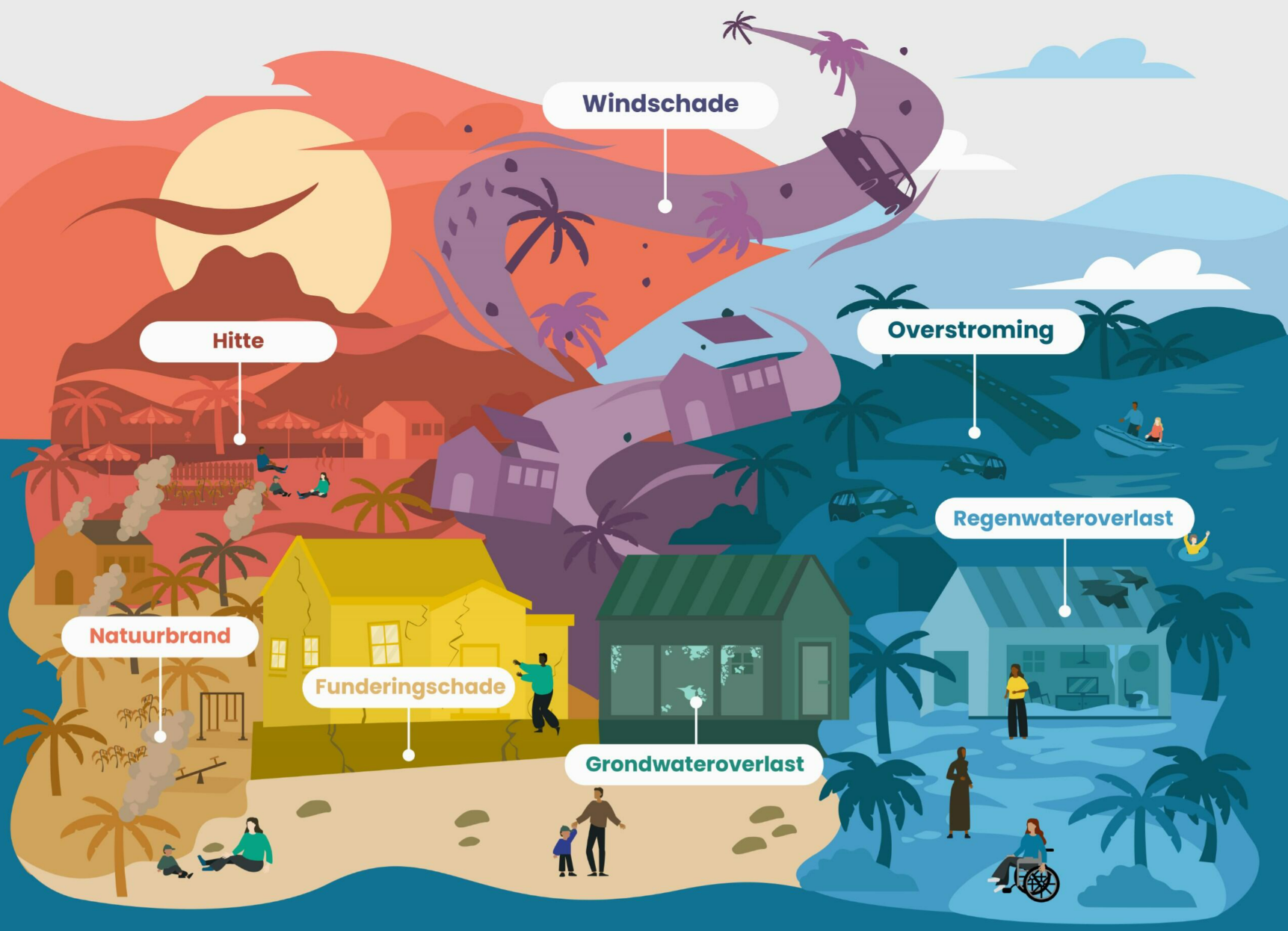 Uit het onderzoek blijkt dat een kwart van de buurten in Europees Nederland sterk blootgesteld is aan meerdere klimaatdreigingen. Vooral in steden en laaggelegen gebieden komen hitte, wateroverlast en overstromingen vaker voor. Gemiddeld verschillen deze meest blootgestelde buurten sociaaleconomisch niet sterk van minder blootgestelde buurten. Wel ligt het aandeel huurwoningen in de meest blootgestelde buurten hoger dan in de minder blootgestelde buurten. In buurten met veel wateroverlast of hittestress wonen bovendien relatief meer eenpersoonshuishoudens en mensen met een migratieachtergrond van buiten Europa.